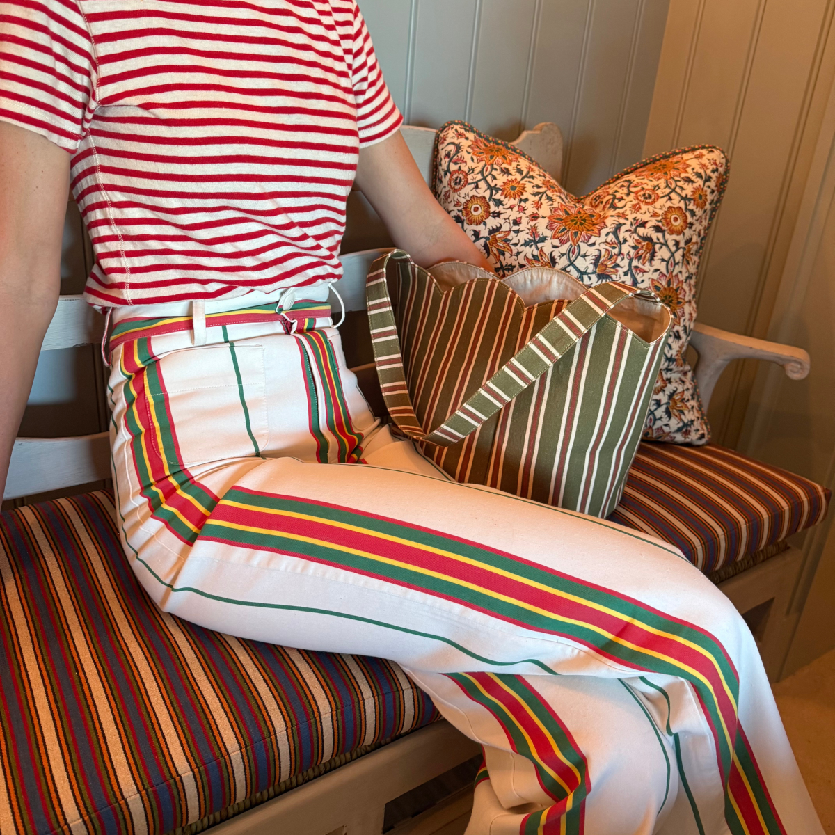 Amelia Tote in Winter Green Stripe  Amelia Tote in Winter Green StripeTote- Regular price